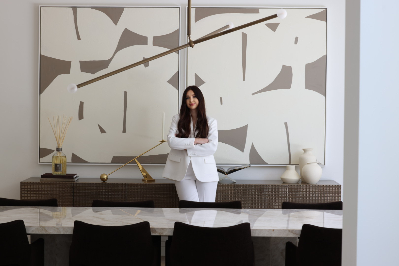 My pieces are designed to transform interiors—not just to decorate, but to shift the energy of a space and create a sense of balance and elegance. Whether I’m painting in a private villa or collaborating with interior designers, I approach each work as a deeply intuitive process.