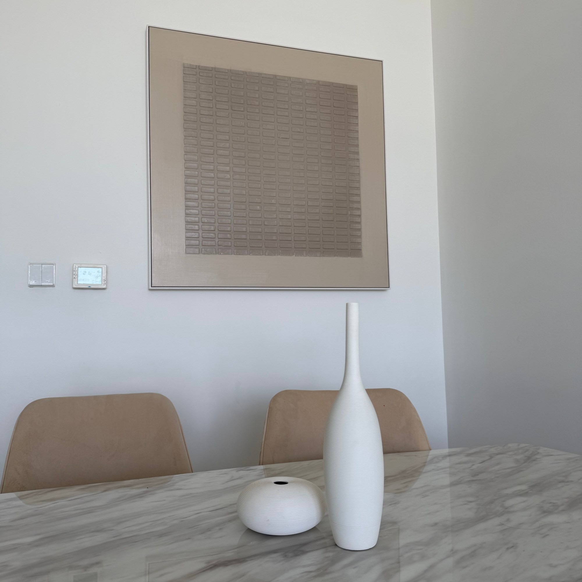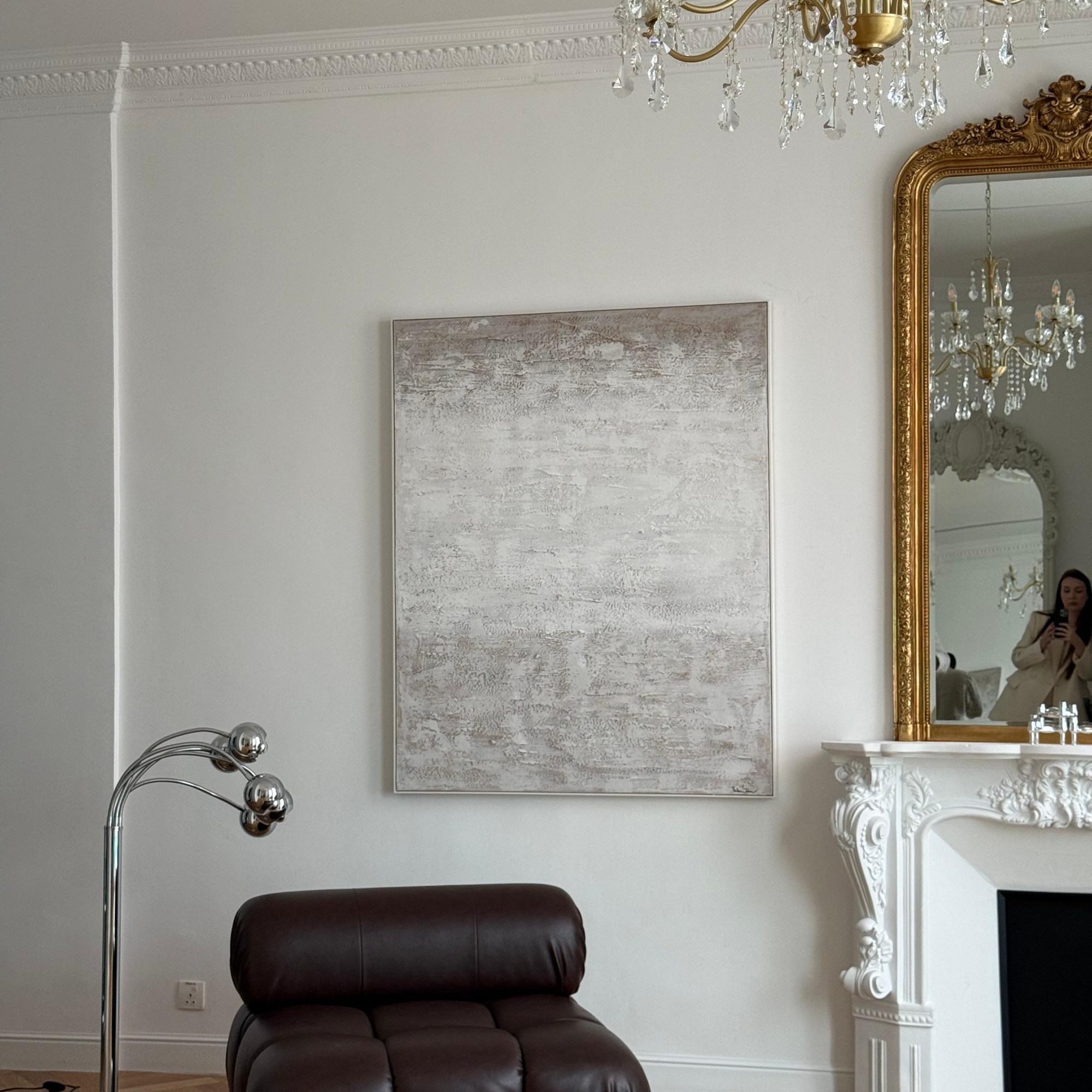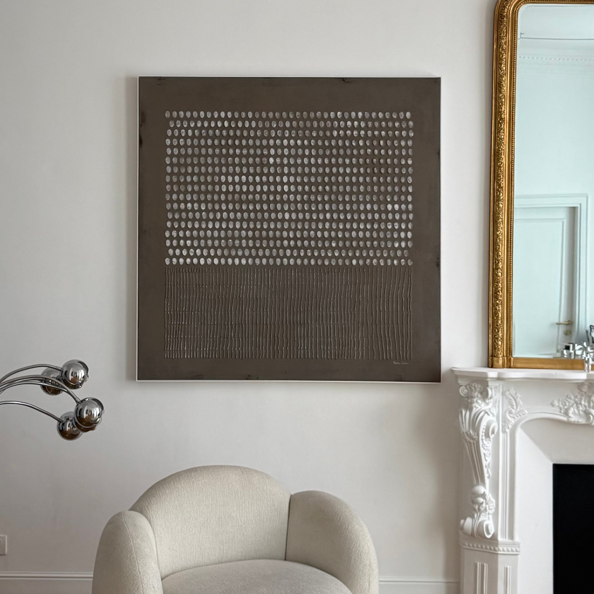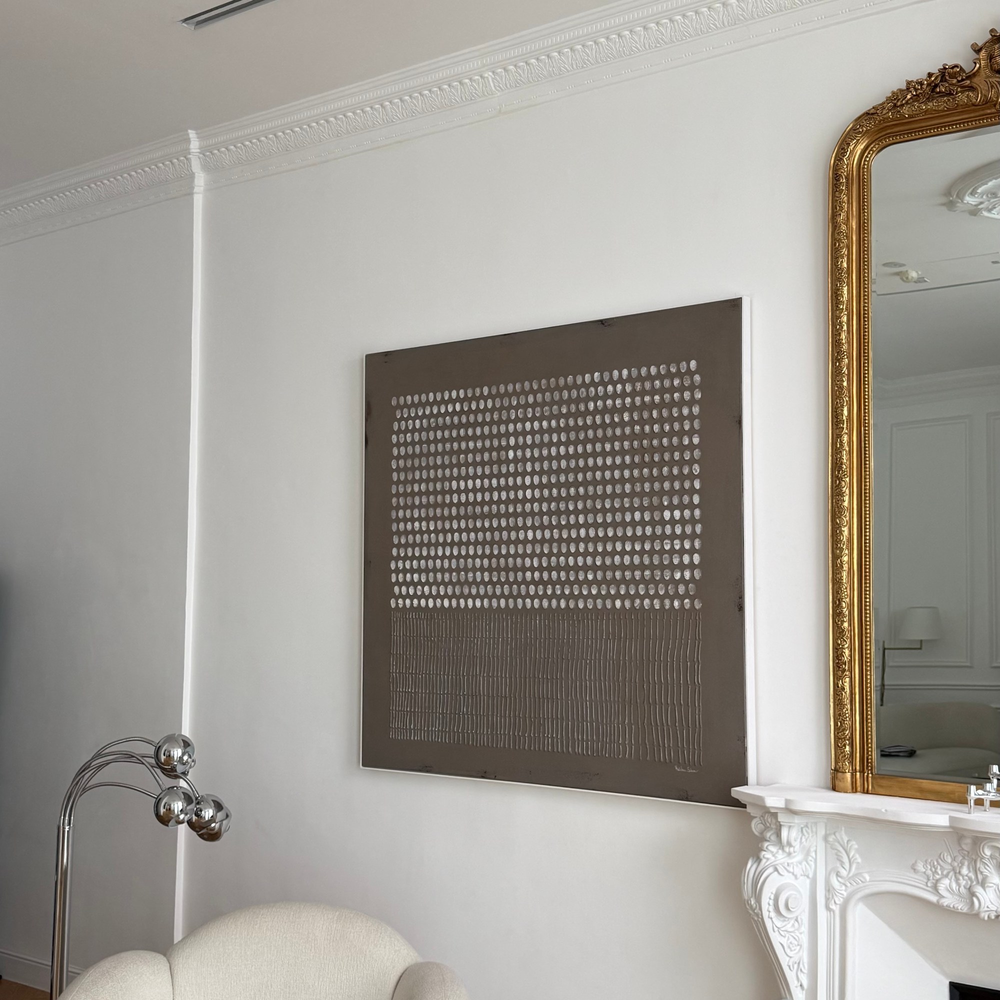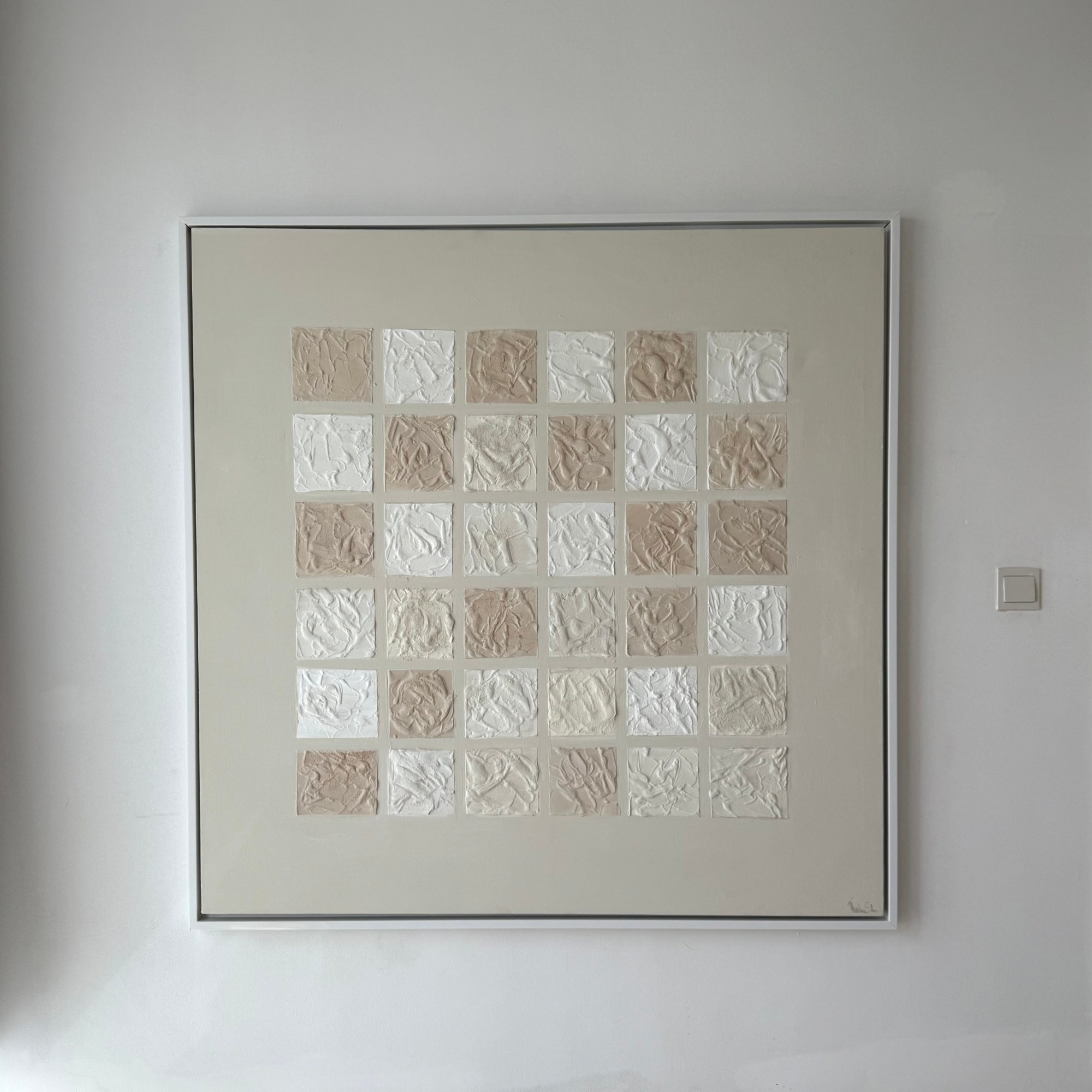 “Sea salt” 150 x 150 cm, framed, 2650 $ + shipping (located in Dubai, UAE)