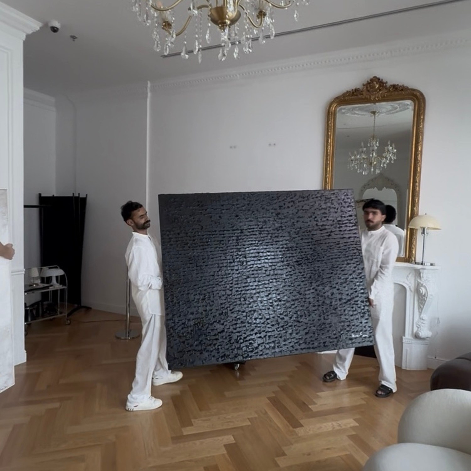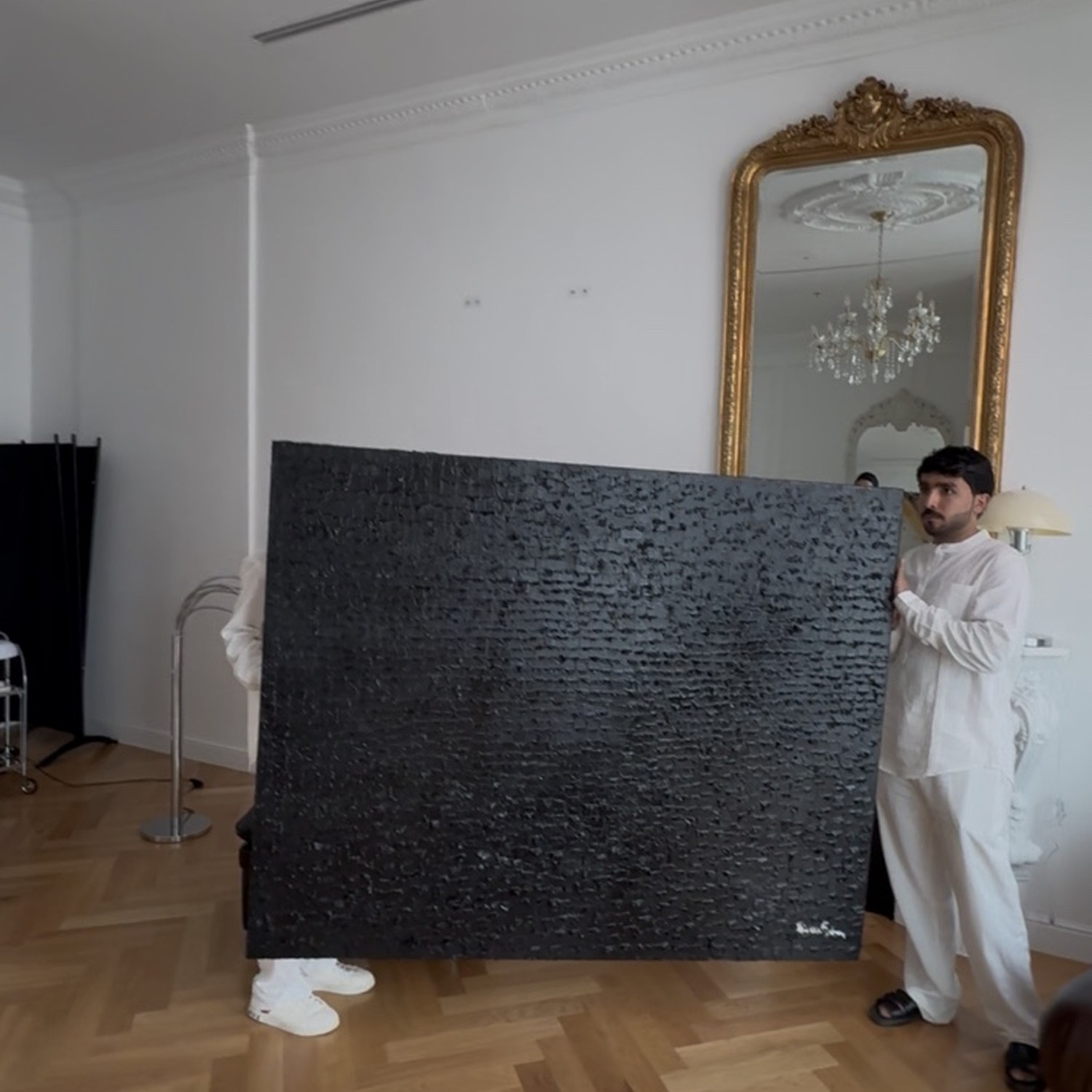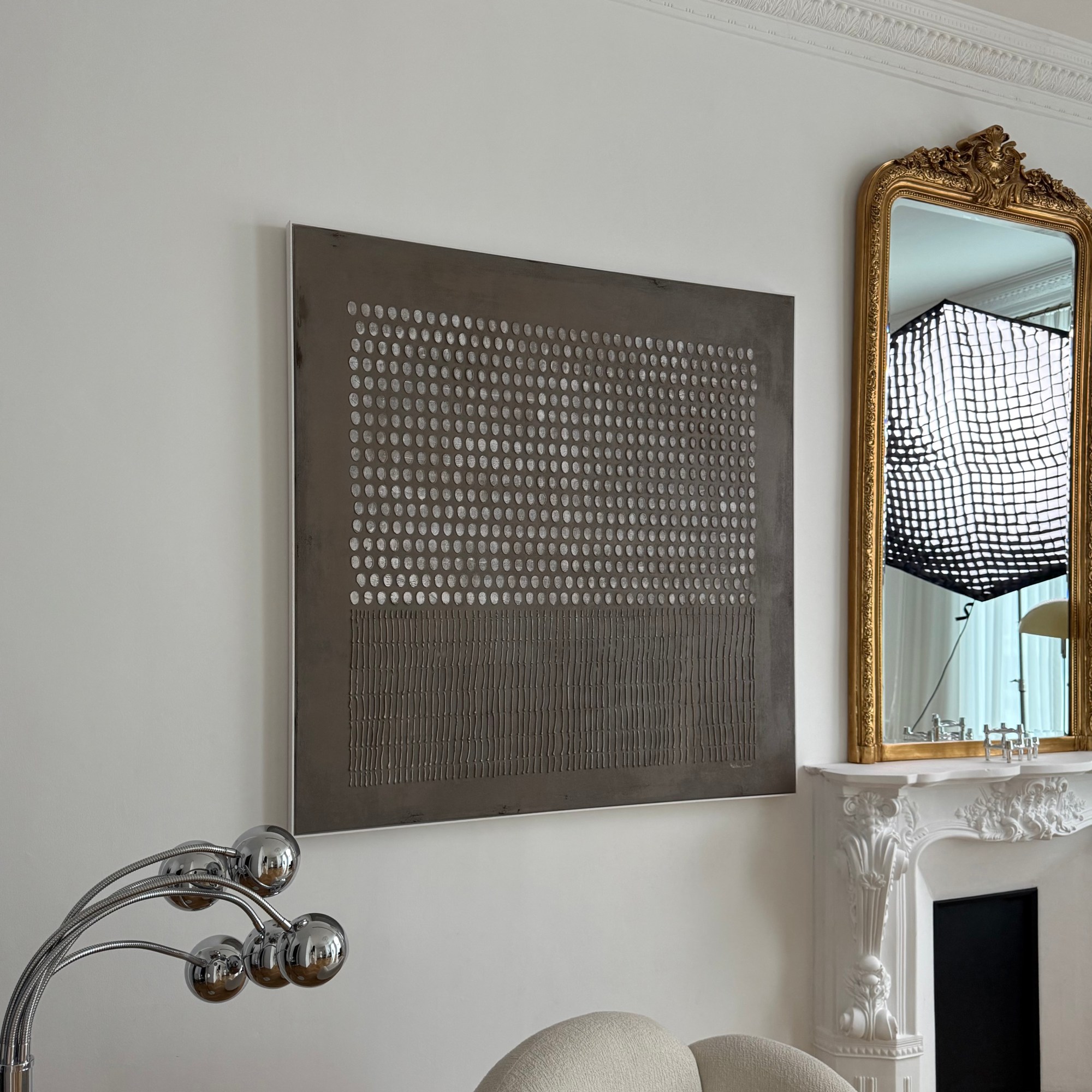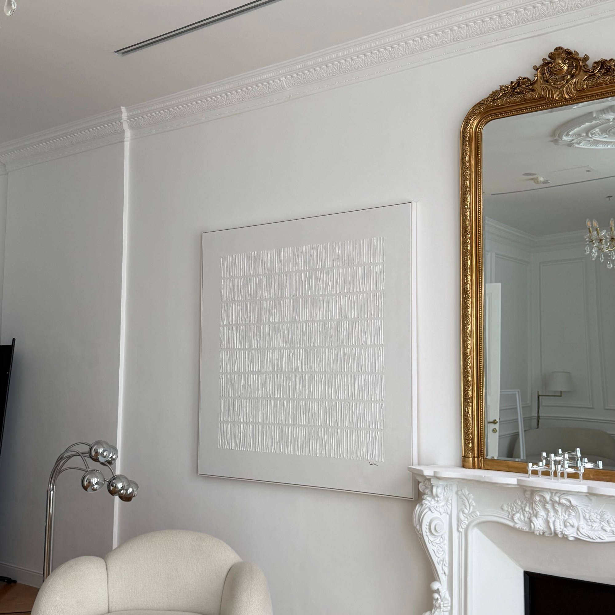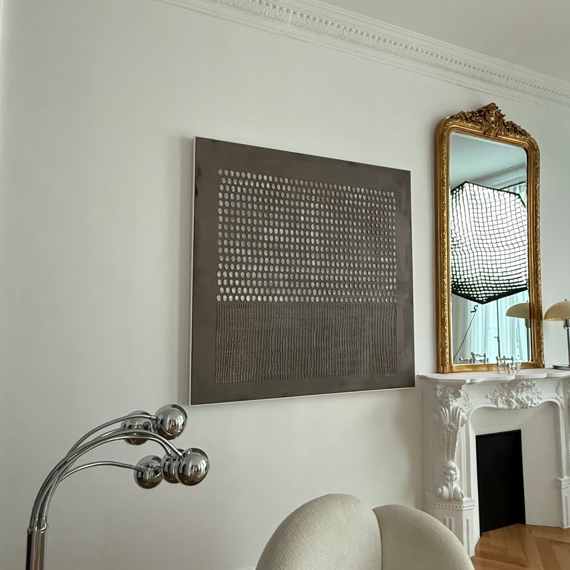 “Sea salt” 150 x 150 cm, framed, 2650 $ + shipping (located in Dubai, UAE)