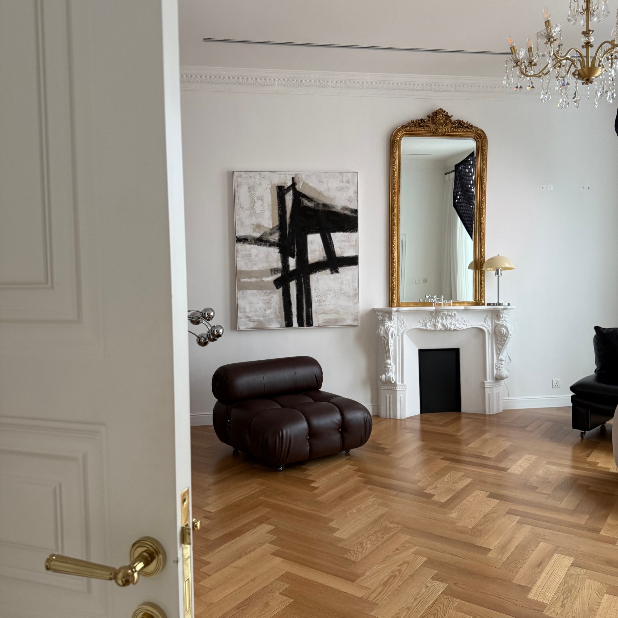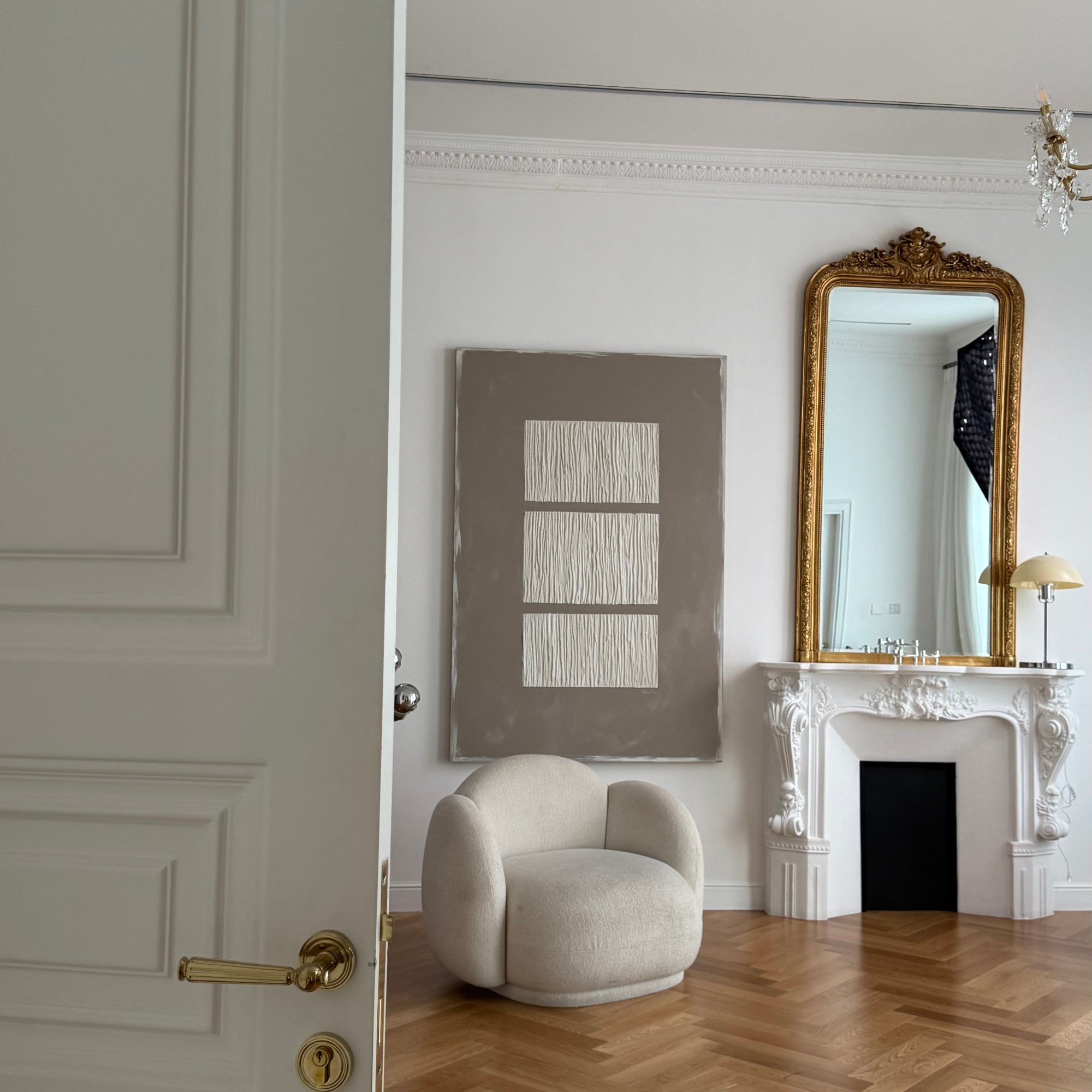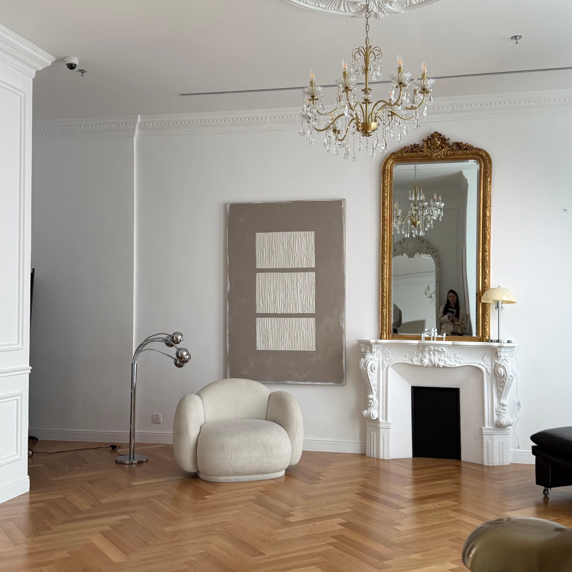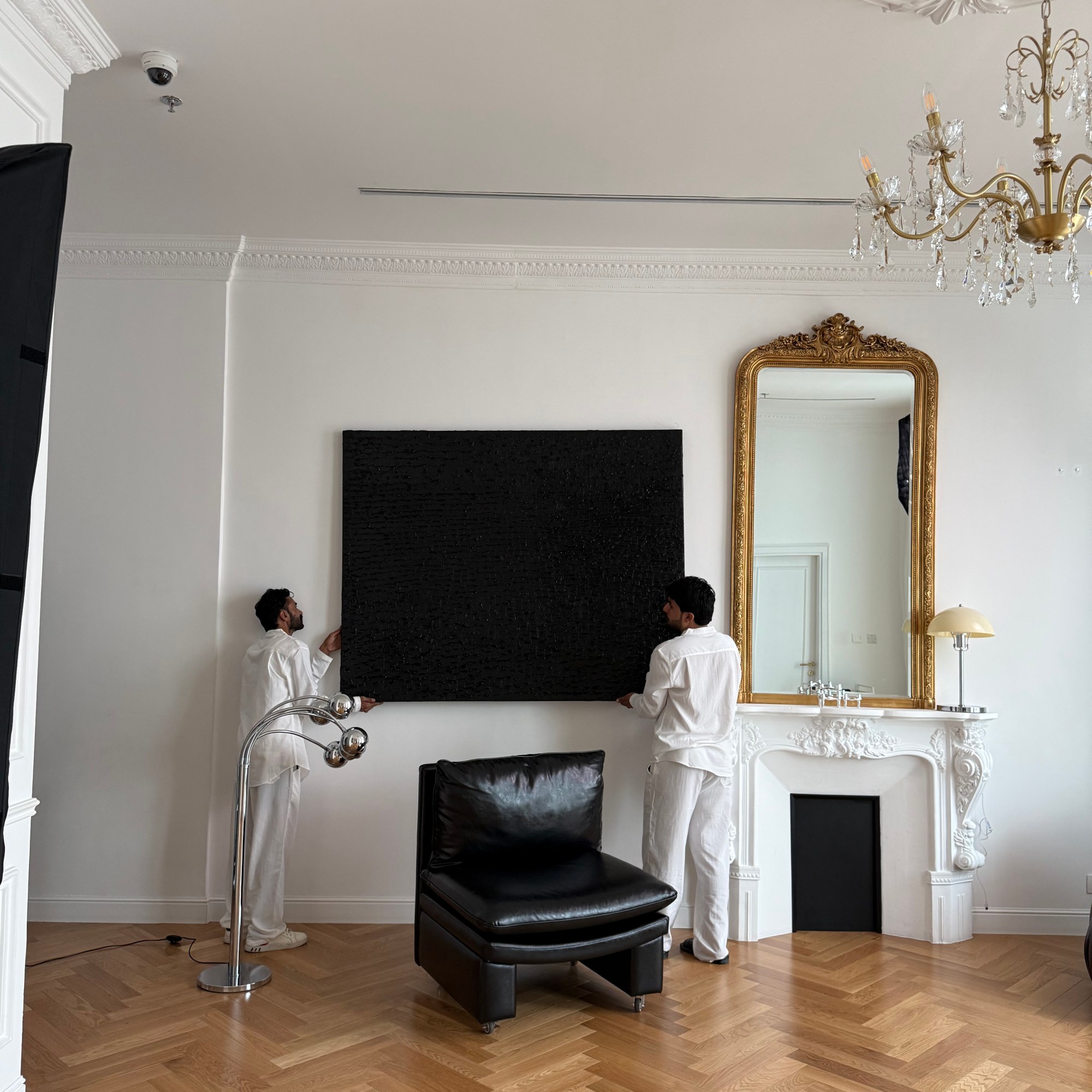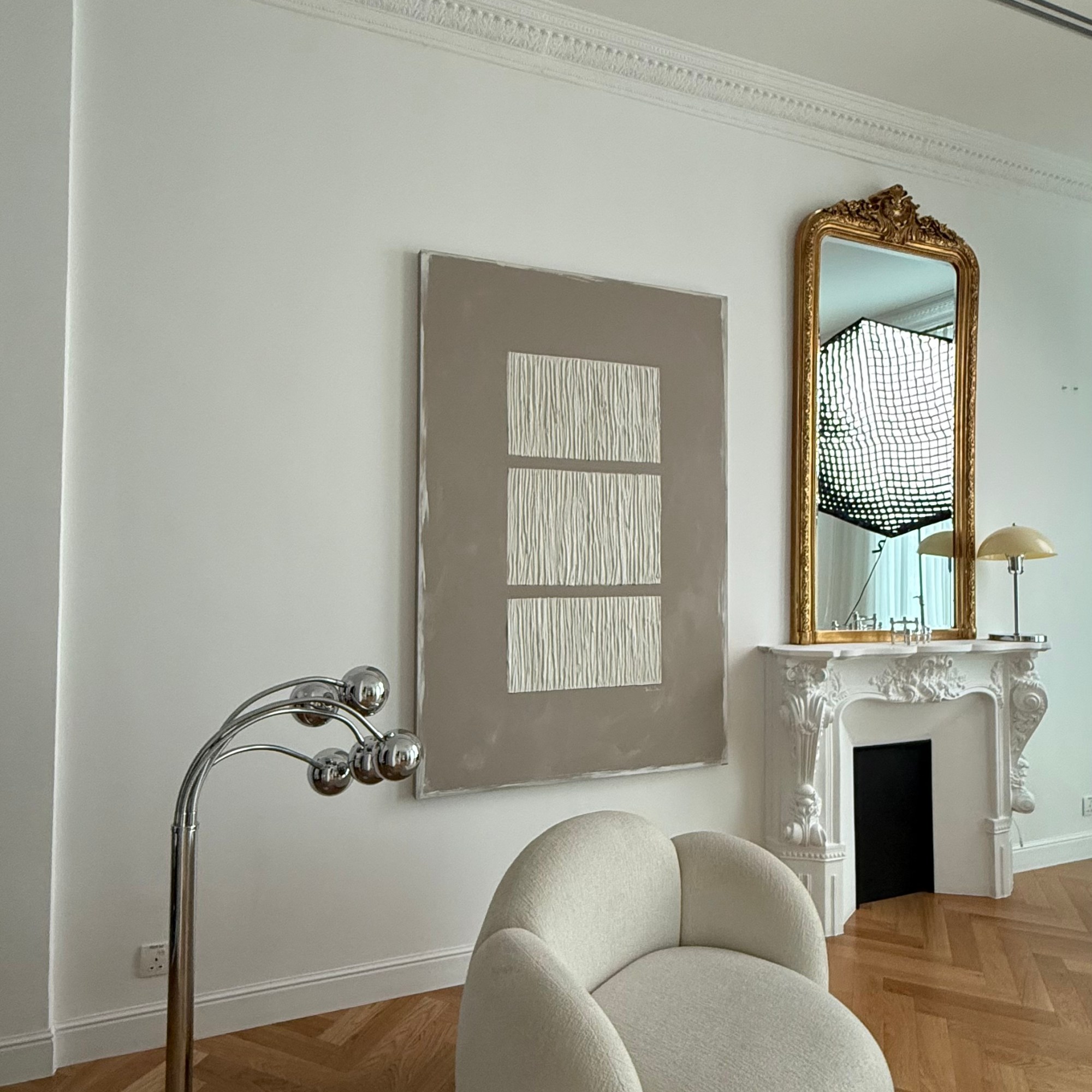 “Sea salt” 150 x 150 cm, framed, 2650 $ + shipping (located in Dubai, UAE)